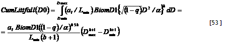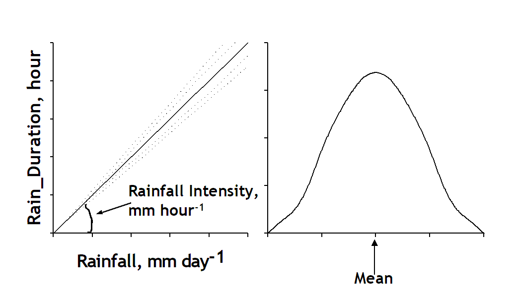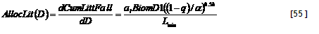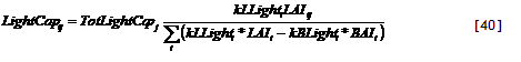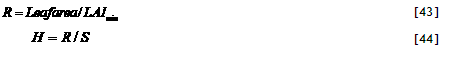 This equation ensures that the average rainfall remains at the value specified; the units for the RainWeightAct parameters are arbitrary. Multiplied with the rainfall per unit area (overall average), we then obtain the rainfall per unit area in each zone i. Similar weighting factors are used in T_LitfallWeight, T_PrunWeight for allocating tree litterfall and tree prunings over the various zones, while conserving their overall mass balance. The units for these weighting factors are arbitrary, as they are only used in a relative sense.