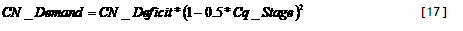 Demand for nitrogen uptake is calculated from empirical relationships of nutrient uptake and dry matter production under non-limiting conditions1, a ‘luxury uptake’2 a possibility for compensation of past uptake deficits and an option for N fixation (driven by the Ndfa parameter, indicating the part of the N demand which can be met from atmospheric fixation).