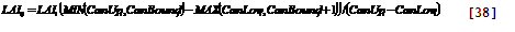 MIN(1,(MAX(0,MIN(RelPos* AfZone[Zone],RelCanWidth))+MAX(0,MIN((1-RelPos)* AfZone[Zone], RelCanWidth)))/ AfZone[Zone]), Else MAX(0,MIN(1,(RelCanWidth – (Tree1ToTheLeft?[Zone] * RelAFZoneTreeLeft[Zone] + Tree2ToTheLeft?[Zone] * RelAFZoneNextLeft [Zone] + Tree3ToTheLeft?[Zone] * RelAFZoneNxt2Left[Zone] + Tree1ToTheRight?[Zone] * RelAFZoneTreeRight[Zone] + Tree2ToTheRight?[Zone] * RelAFZoneNxtRight[Zone] + Tree3ToTheRight?[Zone] * RelAFZoneNext2Right[Zone] ))/ AfZone[Zone]))))