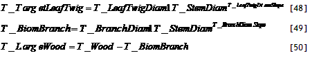 Trees can be planted, pruned and harvested at set calendar dates, using either of the three copies of ‘tree’ available. Allometric equations, which can be derived from fractal branching rules in a separate spreadsheet, govern the allocation of growth resources over the various tree organs. Trees can be pruned in the model to a specified degree on the basis of a user-specified set of dates (T_PrunY and T_PrunDoY, similar to the crop sequence), or on the basis of one or two criteria: concurrence with a crop on the field and when the tree biomass exceeds a ‘prune limit’ (see section 3.10.7 for details). Prunings can be returned to the soil as organic input or (partially) removed from the field as fodder.
