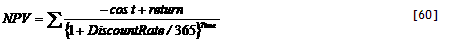 The WaNuLCAS model can predict the outcome of patch-level performance of agroforestry systems under a range of management choices. In version 2 a simple financial analysis is provided in the form of a Net Present Value calculation. Dr. Thomas P. Tomich and Mr. Suseno Budidarsono (ICRAF SE Asia) advised on the development of this section. The basic equation is: